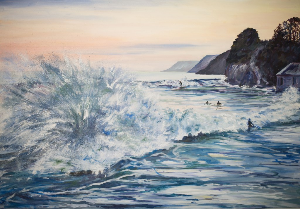At Caswell Bay, with sea level rising…….. the highest tides of the month are always exciting, the surf rolls in and smashes against the sea defenses, bouncing back into oncoming waves, they together dance, and it is beautiful…..