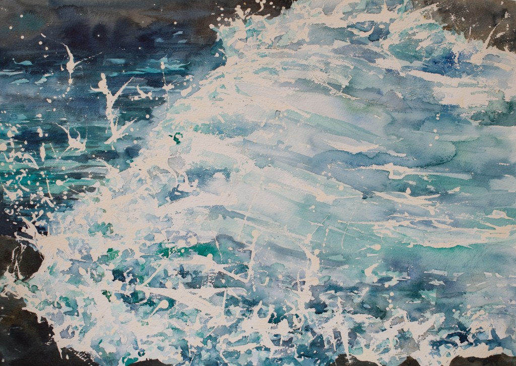 There are times when I just sit on the rocks and watch the water, sometimes calm, sometimes not….it is never still so when you paint it, it has to come from within…..a merging of all the moment you have watched as they change. I am sure I will paint many more waves