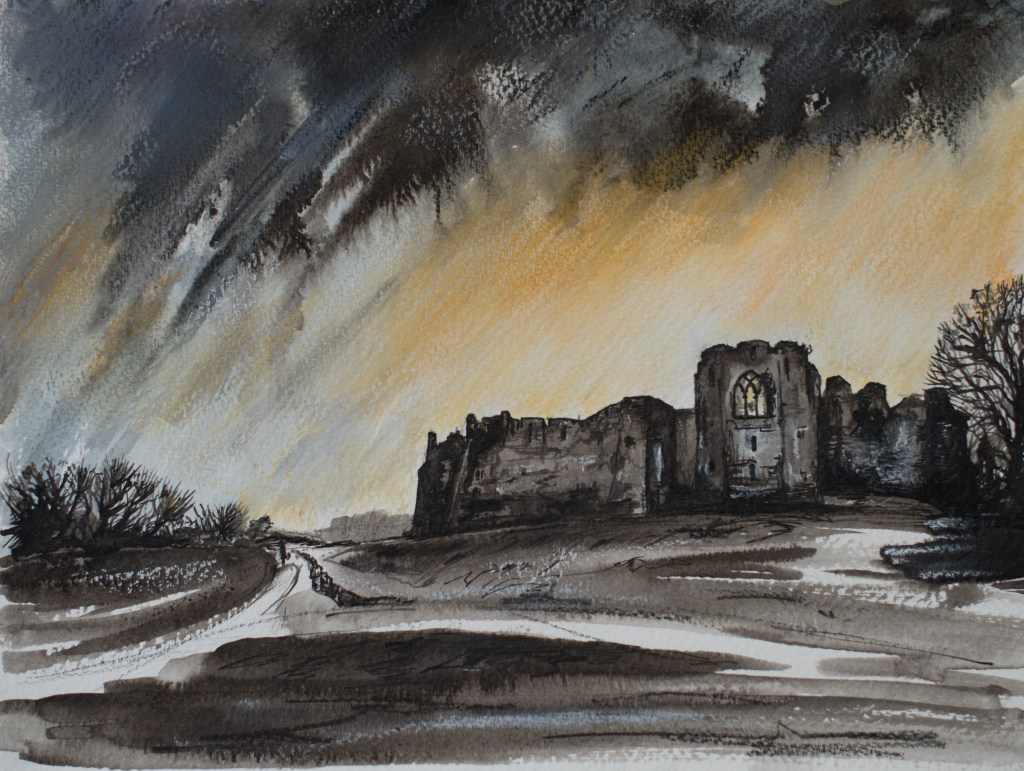 Mumbles Castle, Ink, mixed media. (2021)