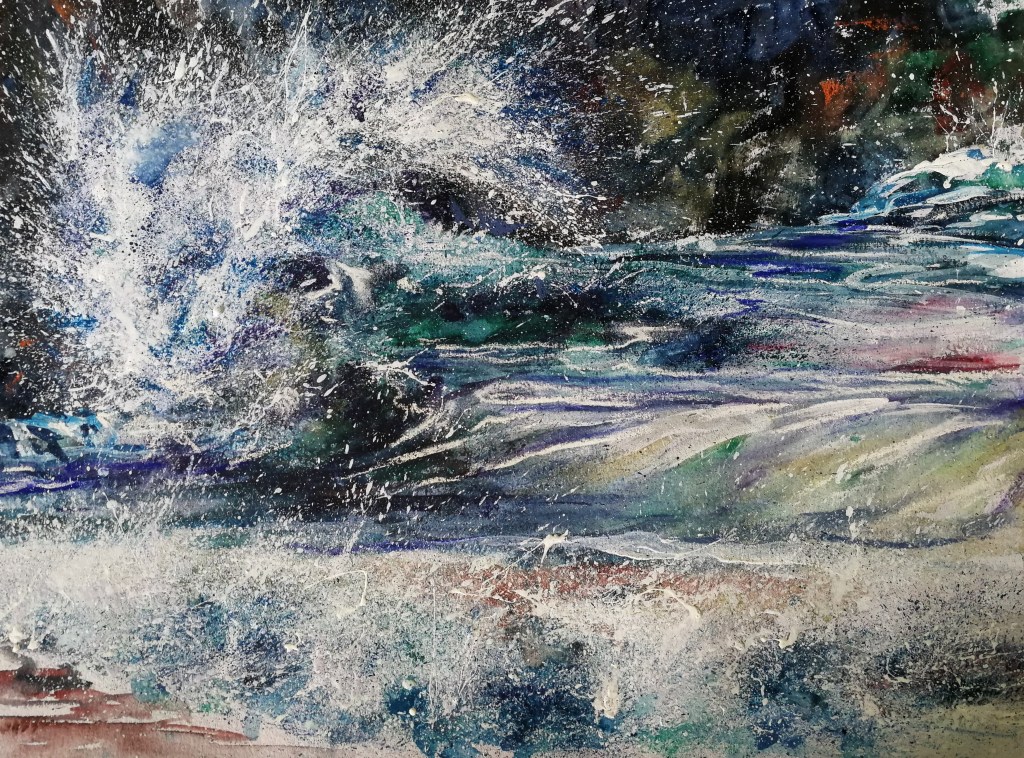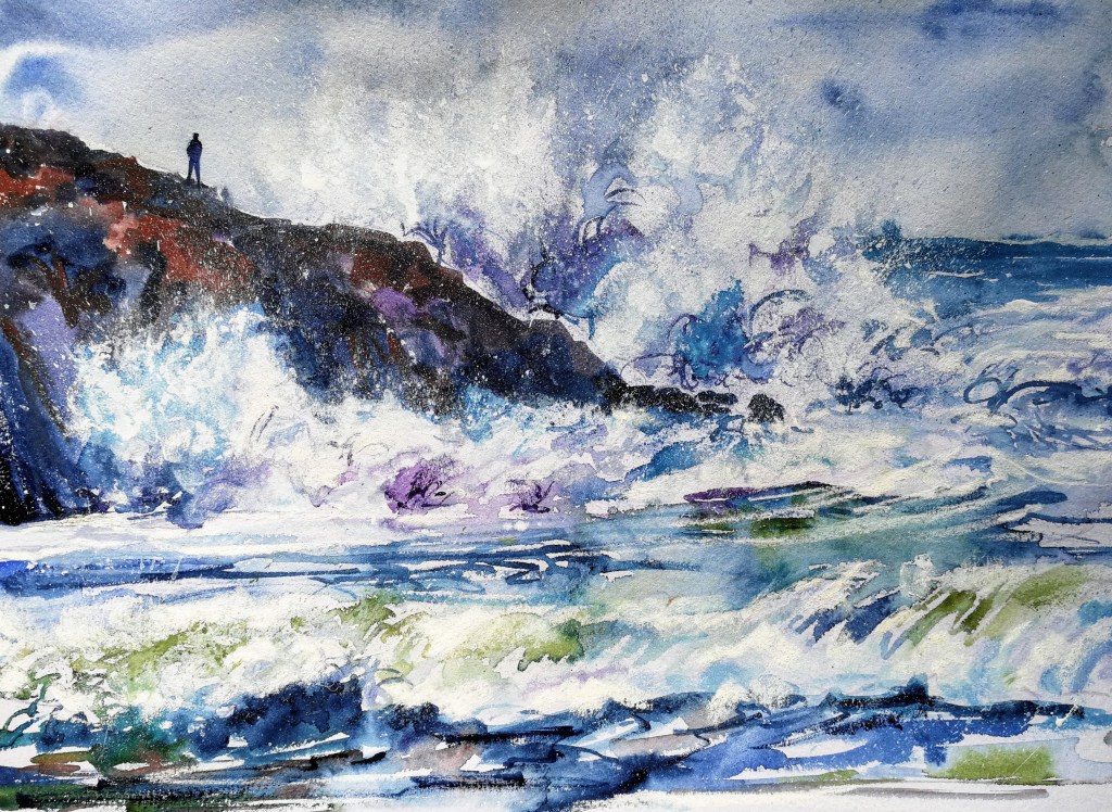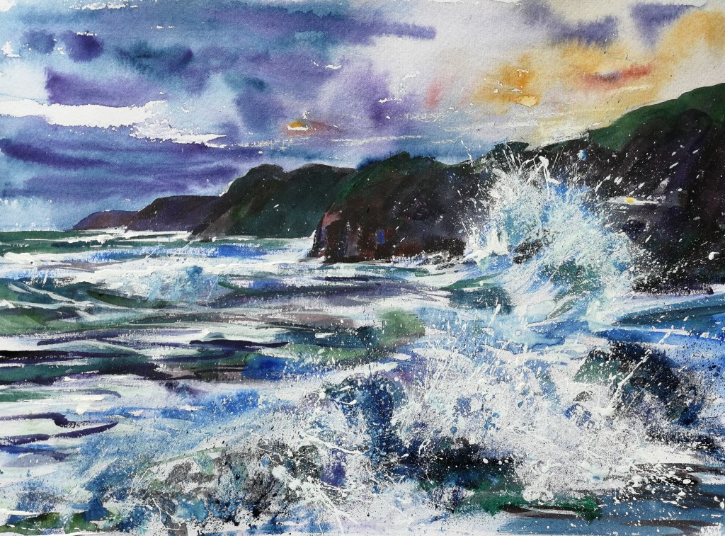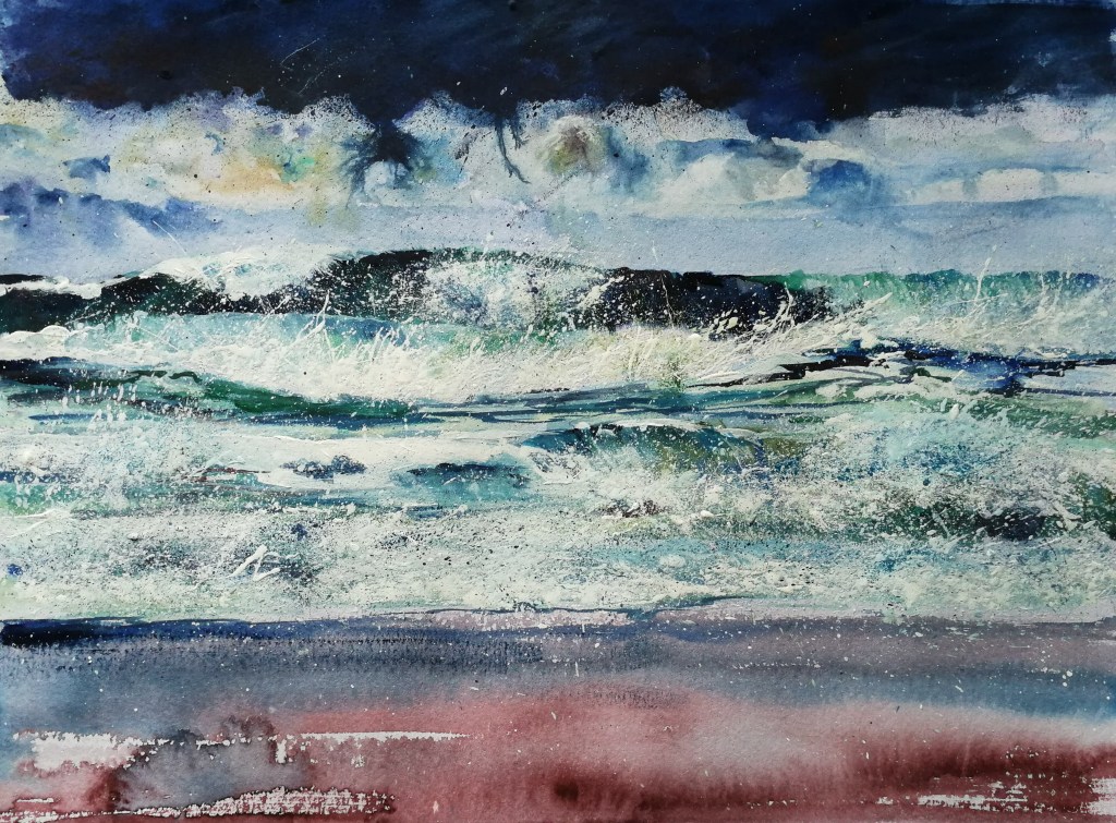 Watercolour. Caswell, Summer Storm, Study OneWater colour. Caswell Summer Storm, Evening. Watercolour, Caswell, Summer Storm, Tourist. Watercolour. Caswell, Summer Storm, Study Four Watercolour. Caswell Summer Storm, Surf.Wave Watercolour